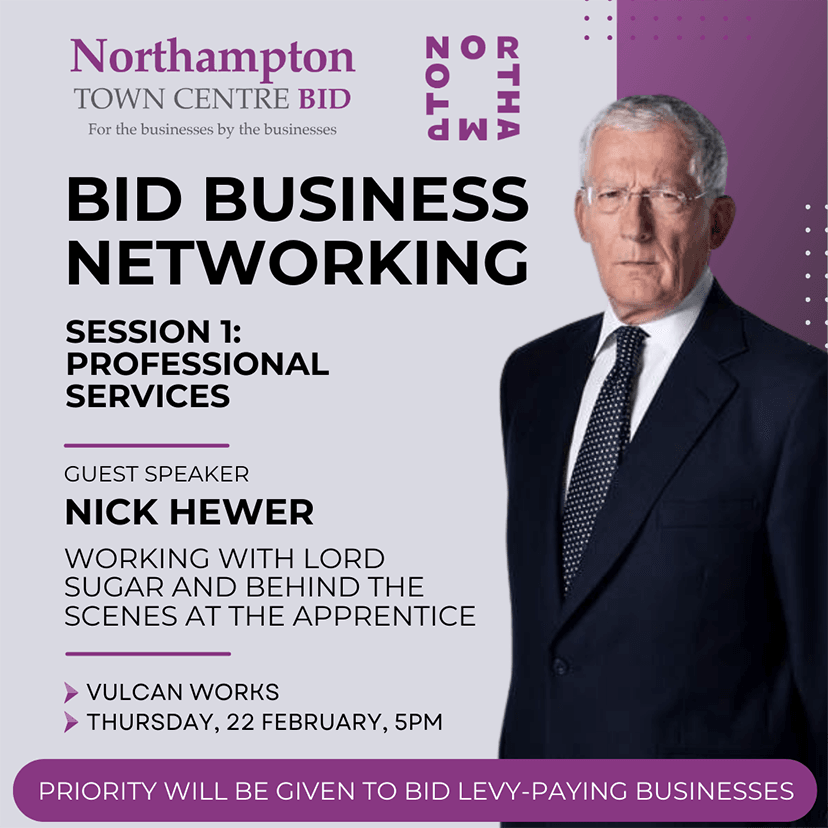The BID Business Networking session takes place at Vulcan Works from 5pm on Thursday, 22 February, with guest speaker Nick Hewer from BBC’s The Apprentice.